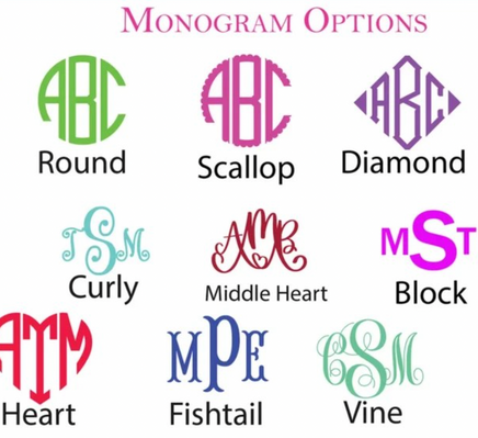 Please send Monogram as First - Last - Middle along with style number for font
